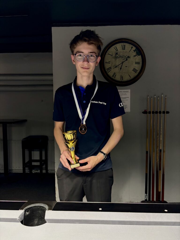 Lauantaina 11.10.2025 pelattiin yhdistetyt U17- ja U19-sarjojen junioreiden Straight Poolin SM-kisat Hyvinkäällä. Kisan 3. sijalle pelasi itsensä upeasti Konsta Kiviniemi. Pronssi on hänen ensimmäinen juniorisarjan SM-mitali, joten saavutus on erittäin hieno ja ainutlaatuinen. Myös toinen VaBin nuori pelaaja, Otso Kivelä, sijoittui mahtavasti sijalle 5 täydentäen vaasalaisten hienoa päivää.